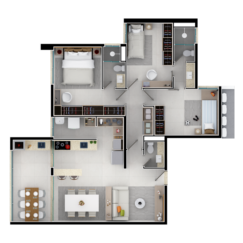 Um empreendimento inovador que conta com apartamentos de 3 suítes, onde todas as unidades possuem sacada gourmet com vista para o pôr do sol no Lago. Tudo em um condomínio clube completo com uma imensa área de lazer distribuída em 5 pavimentos.